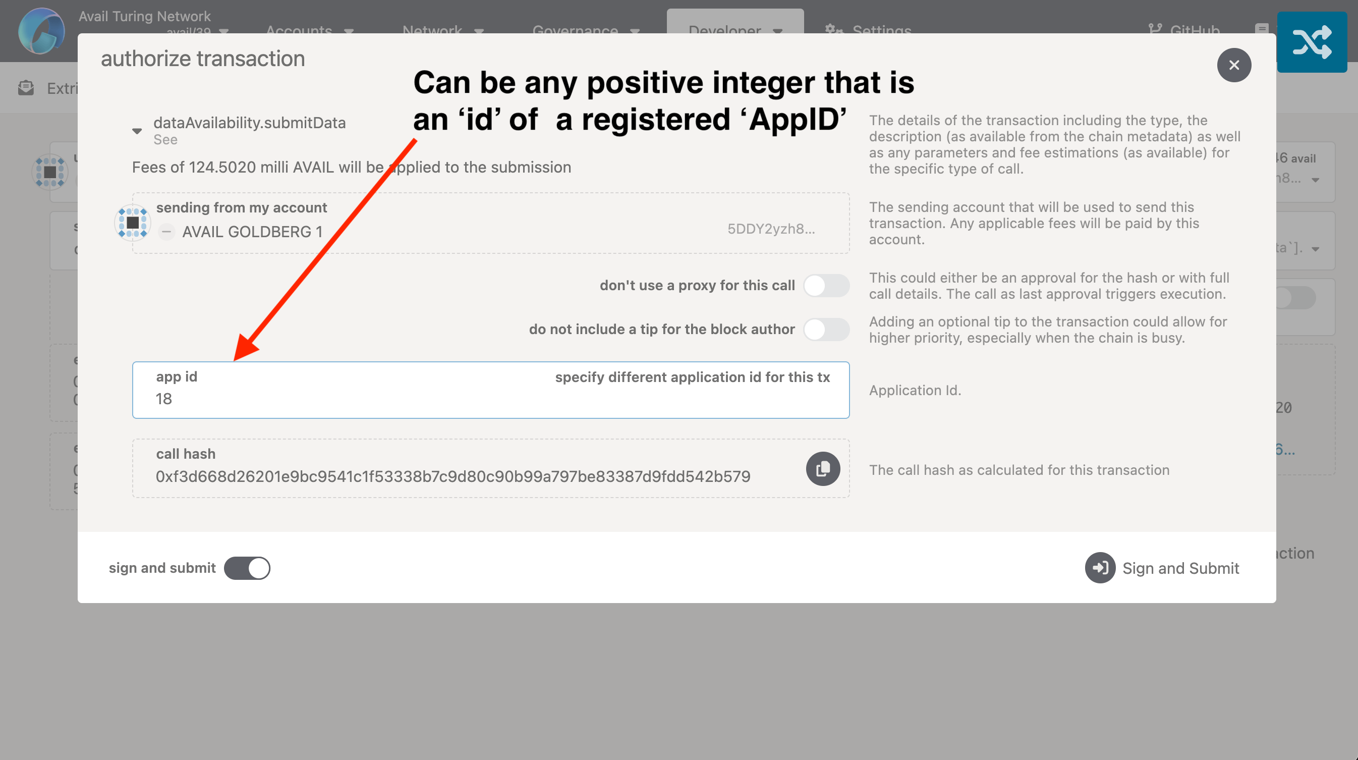 AppIDthat you want to submit the data to. Click onSign and Submitto authorize the transaction through your wallet.